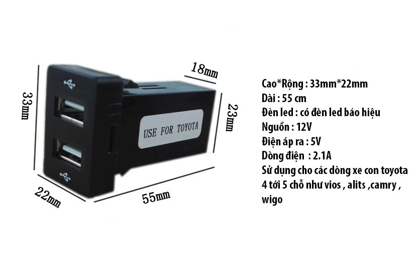 SẠC ĐIỆN THOẠI USB THEO CÁC DÒNG XE TOYOTA.